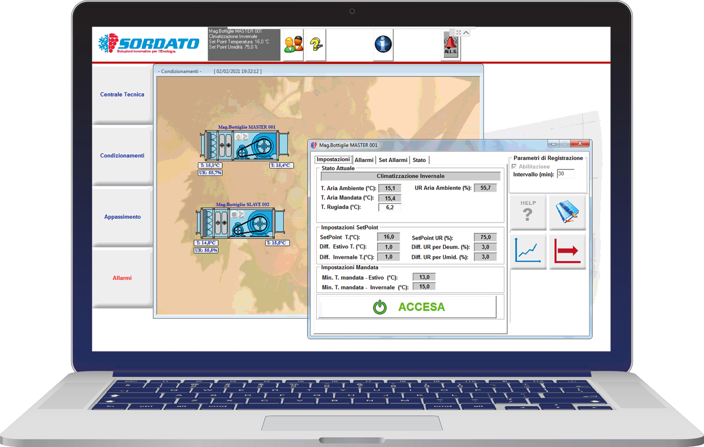 Imposta i parametri funzionali dei tuoi impianti, all’interno della cantina o da remoto, con la stessa interfaccia grafica